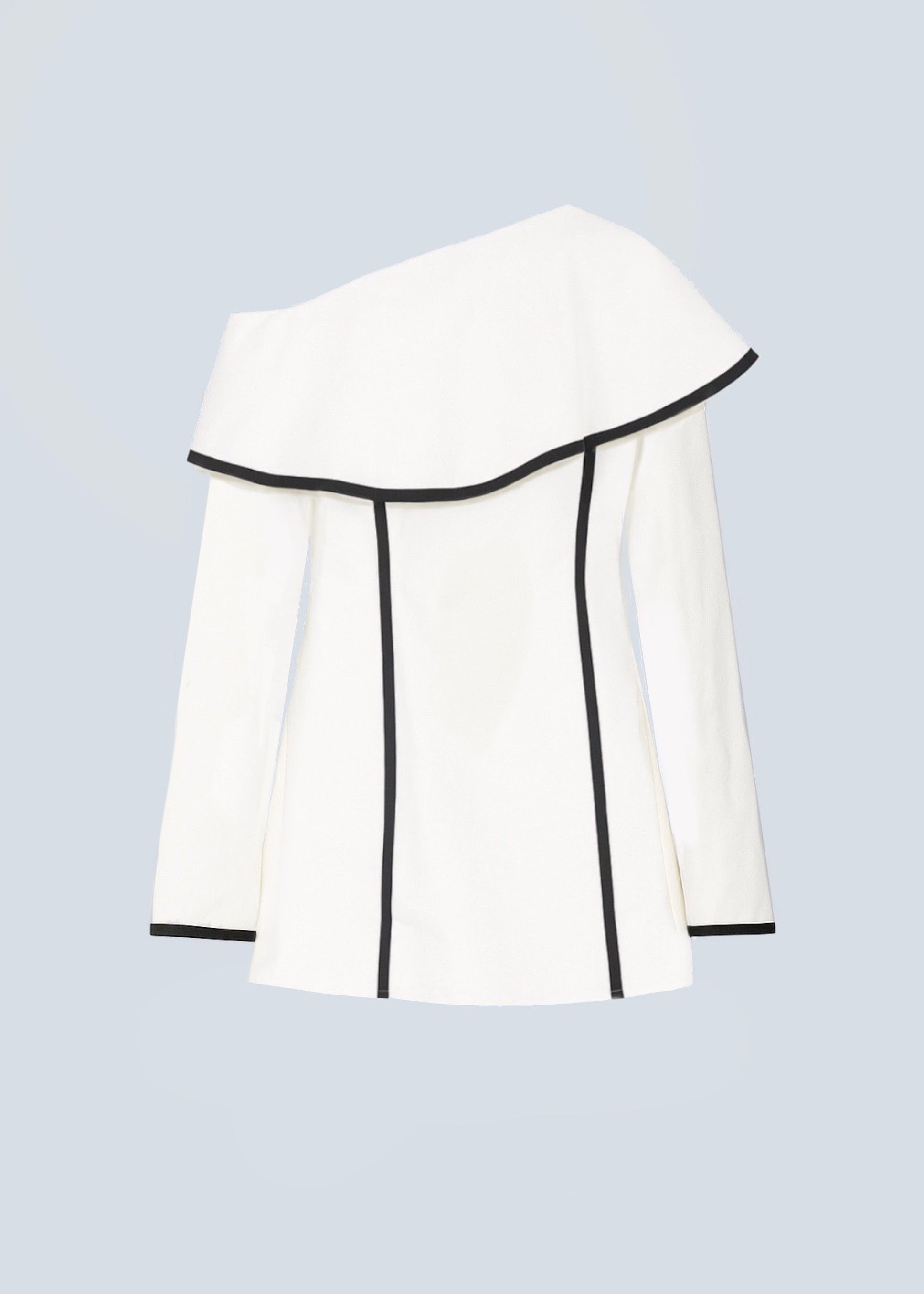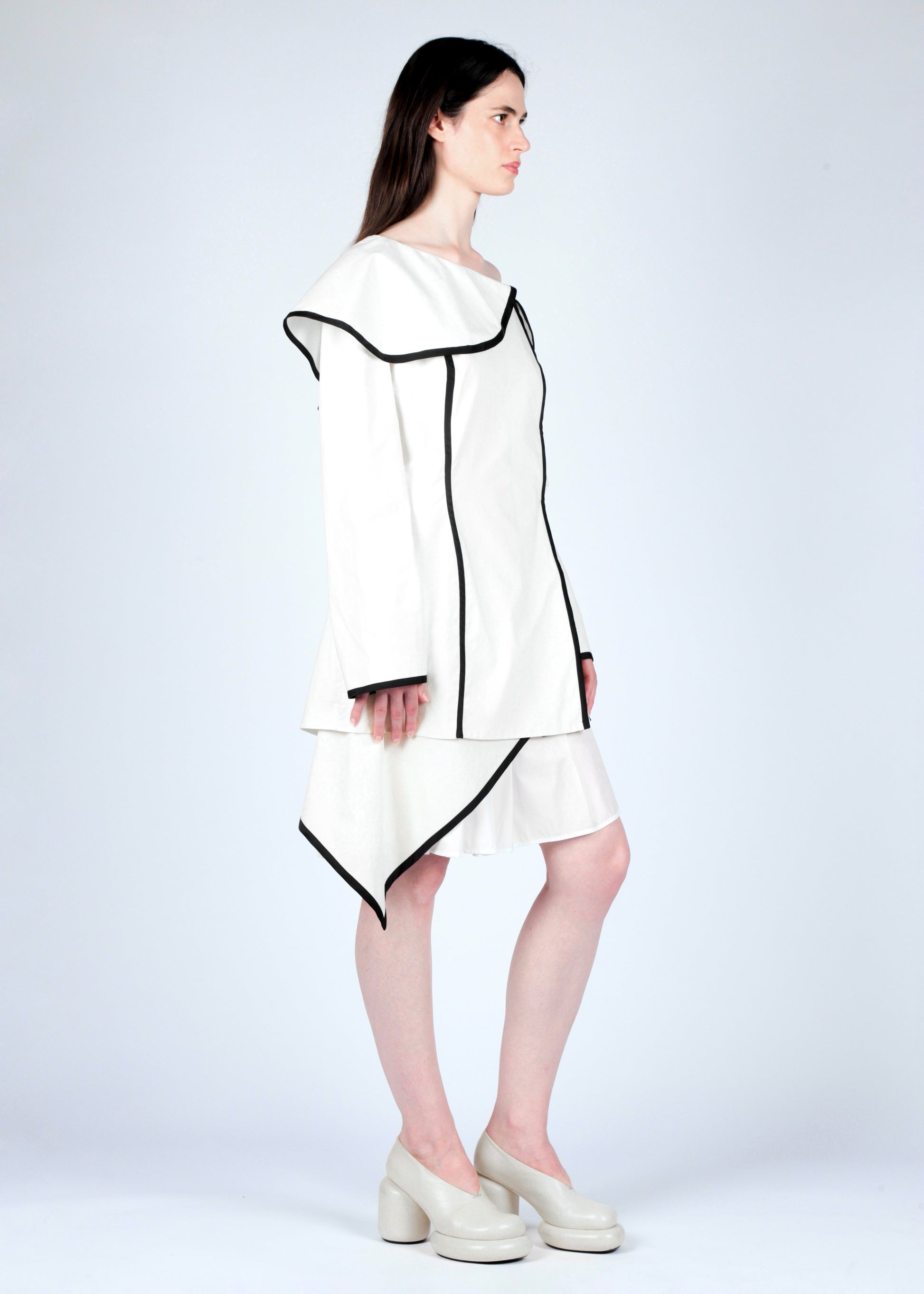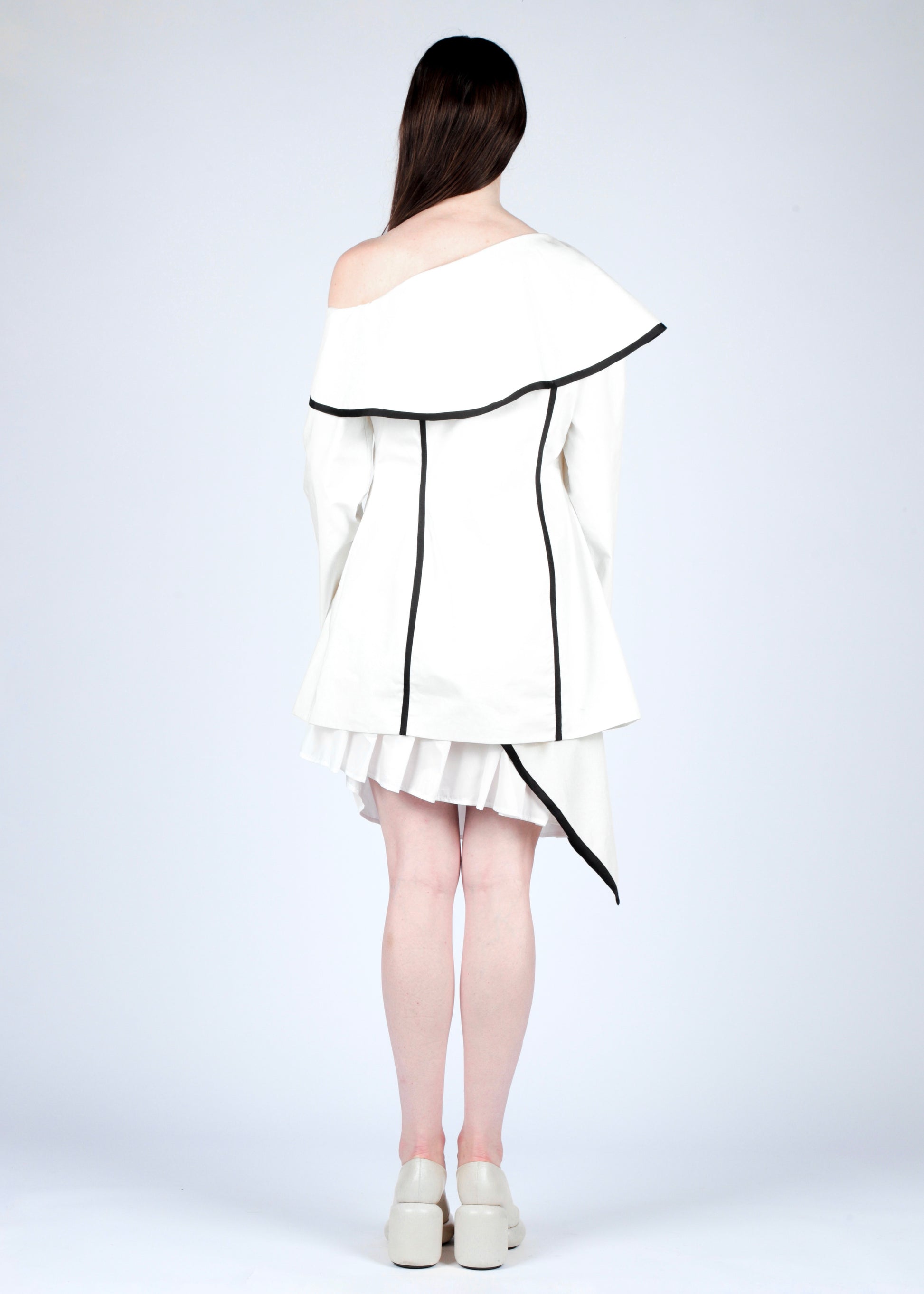 Short dress with rounded neckline.
