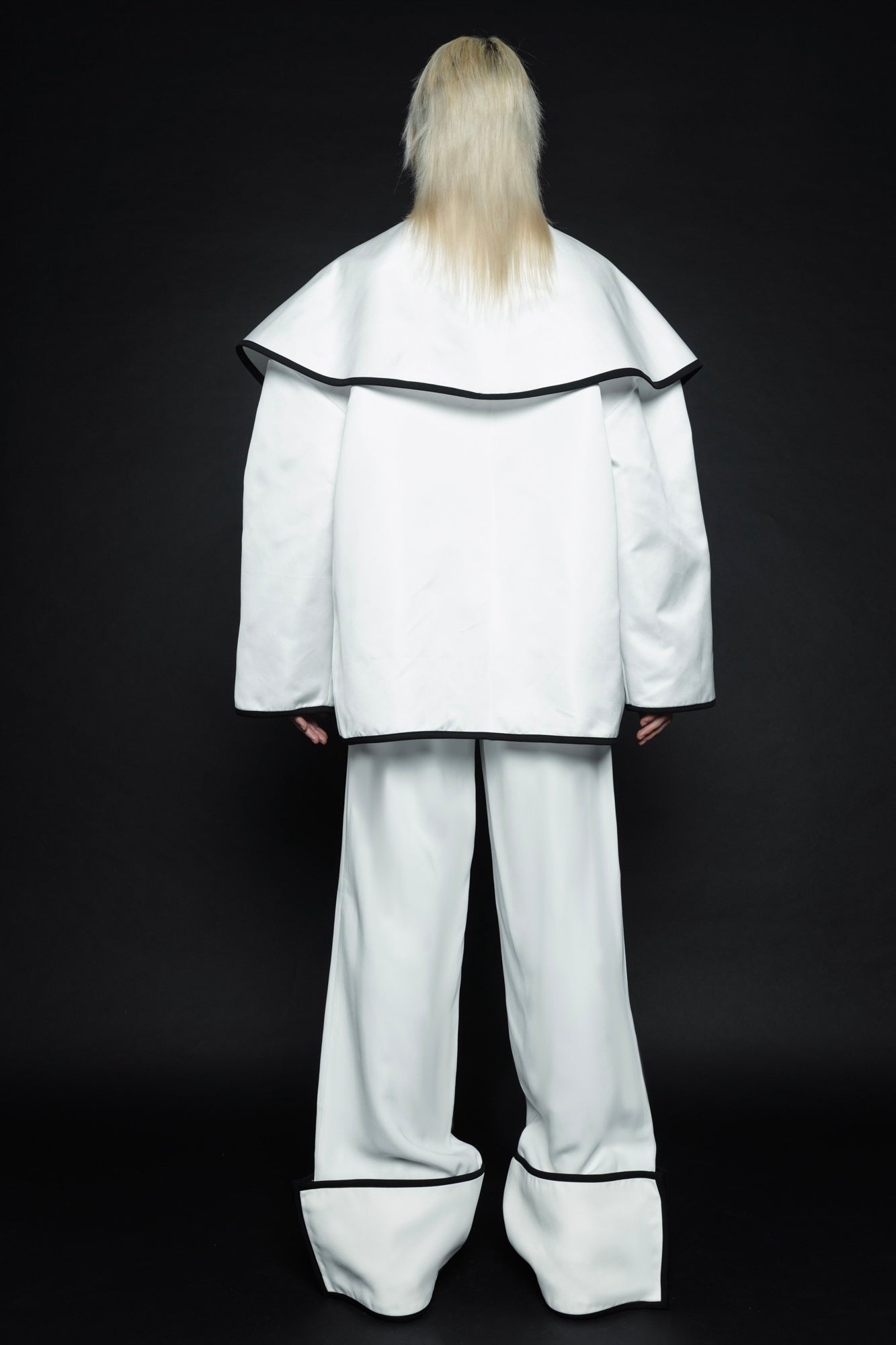 The hem is defined by a contrast piping detail, creating a sharp graphic edge that reflects The Line’s identity.